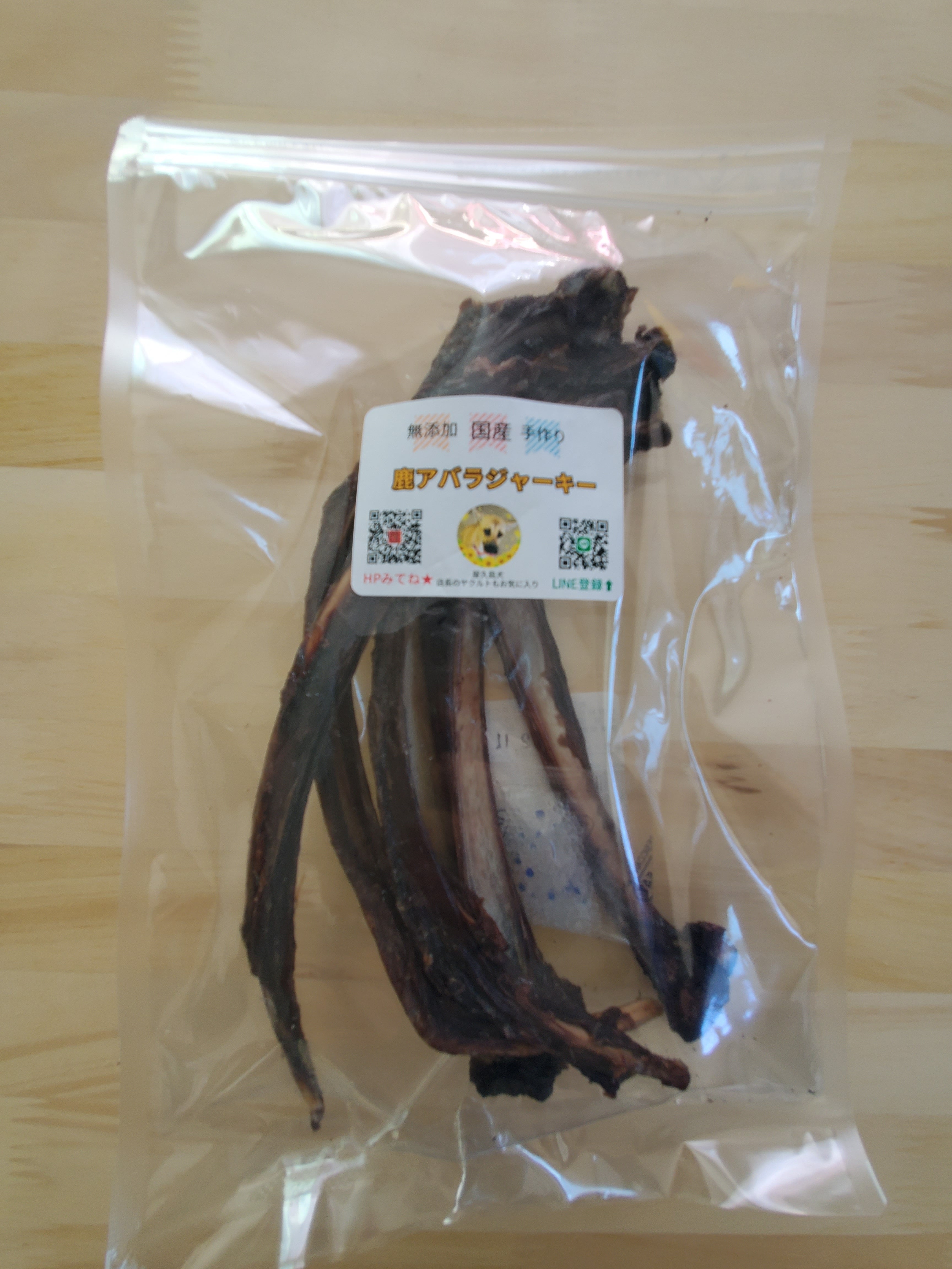 国産鹿のアバラを丁寧に裁き、じっくり乾燥させています。中型犬の店長のヤクルトもバリバリたべられます!骨が空洞になるまで乾燥していますが、硬いので、飼い主様監視のうえ与えてください。